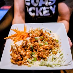 Born And Raised is a sports bar located in Henderson, NV, offering a diverse menu of American cuisine with a focus on chicken wings. This trendy establishment provides a casual and welcoming atmosphere, perfect for gatherings with friends or watching the game on TV. With a range of options including vegan and limited vegetarian choices, Born And Raised caters to a variety of dietary preferences.